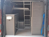 TRAFIC 3 L2H1 de Frédéric: conversion d'une camionnette 3 places en Van, aménagement latéral avec penderie et meuble cuisine, plan de travail droit, équipé d'un combiné plaque de cuisson/ 2 gaz DOMETIC, intégration d'un frigo VITRIFRIGO 50 litres. Banquette modulable RIB sans ceintures/Lit 115 x 186, rangements sous le siège, remplacements des sièges conducteur et passager (banquette) par deux sièges confort RIB.